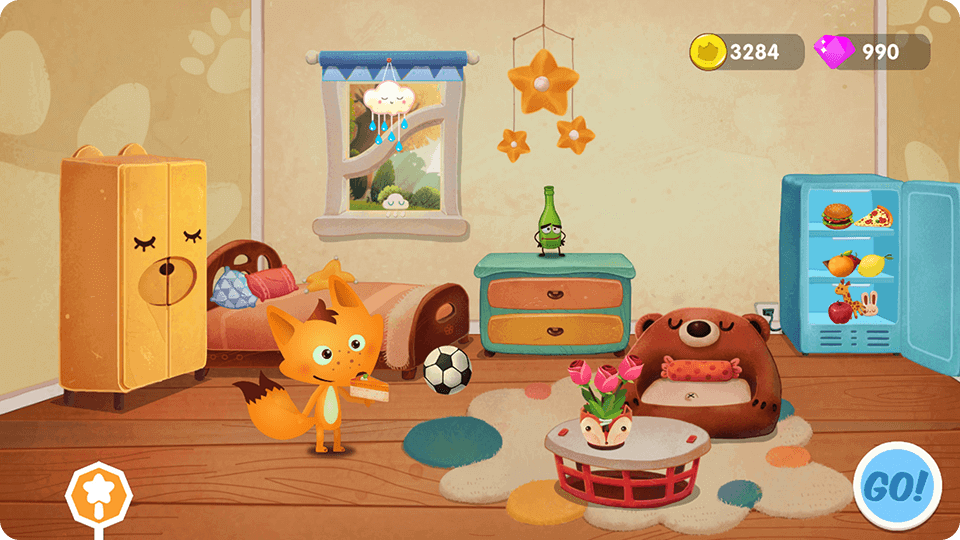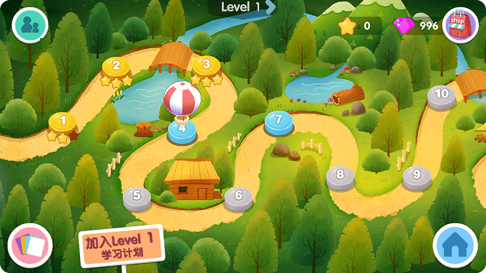 让孩子与动画中的人物用英语沟通交流,共同完成有趣的课程任务
