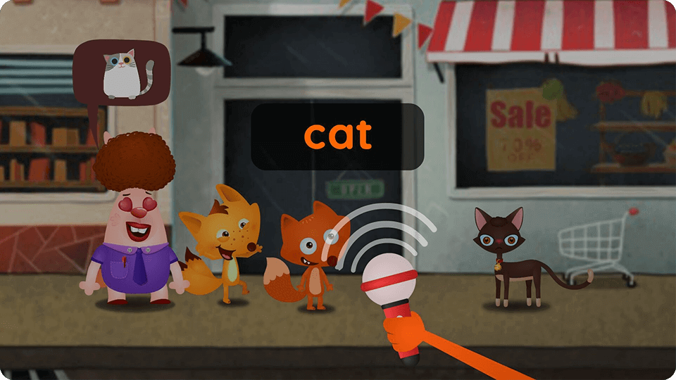 专注提升孩子的听说能力,“i+1”难度的角色对白和教学点设计,视觉和听觉的共同辅助,开发孩子的听力理解能力